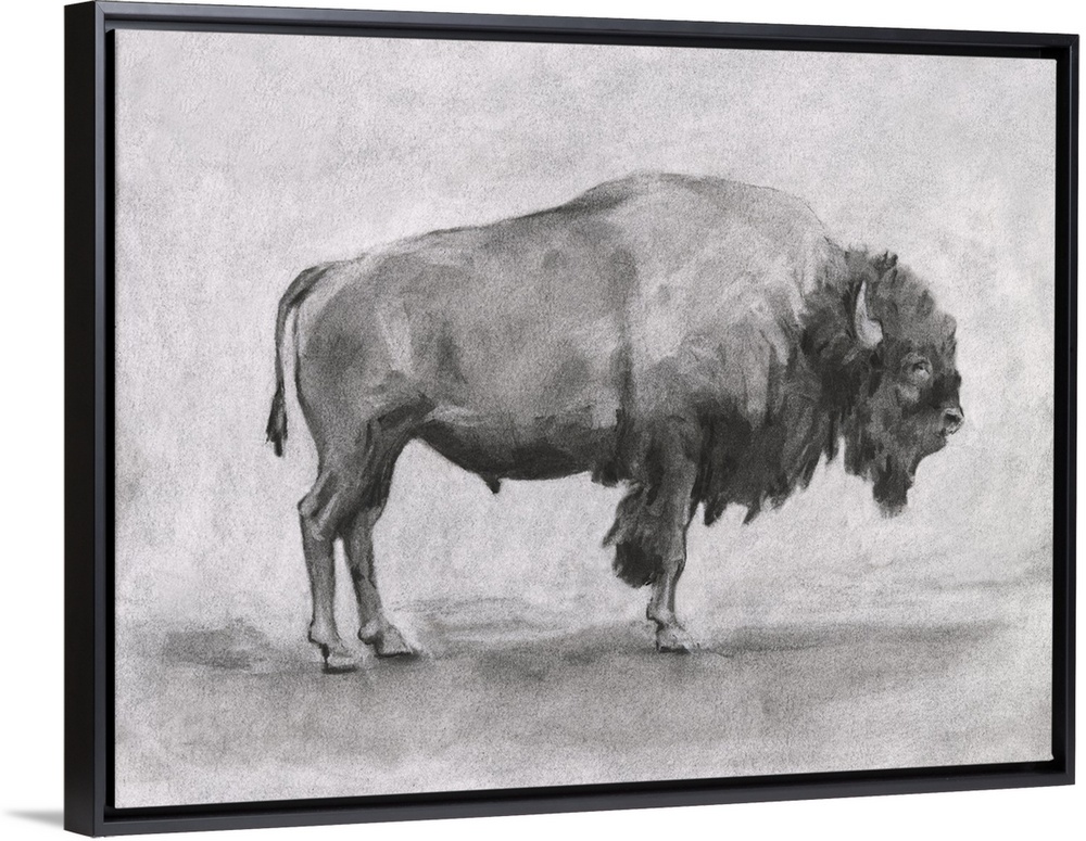 Art Rustic Contemporary Art Wildlife Drawing Grey Wall Art Emma Scarvey Wildlife Bison and Buffalo