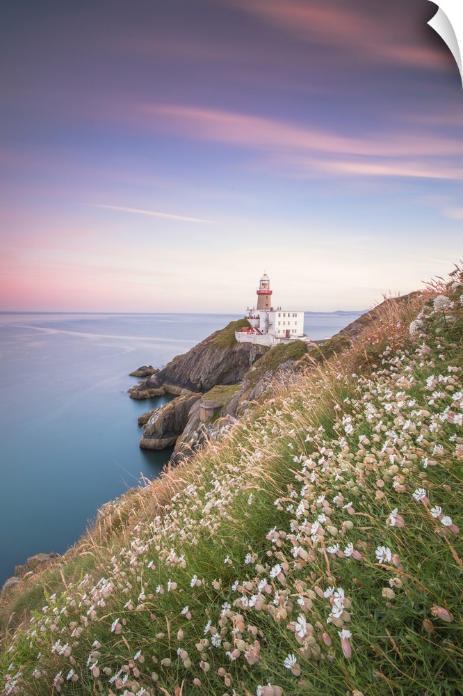 <p>Wild flowers with Baily Lighthouse in the background, Howth, County Dublin, Republic of Ireland, Europe</p>