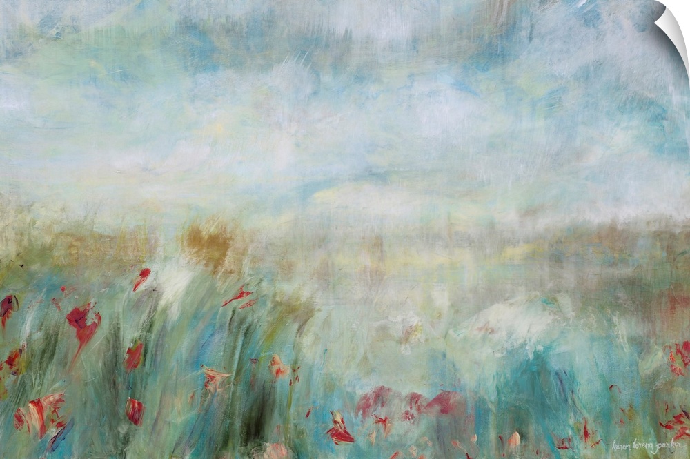<p>Painting of a field of flowers done in soft brush strokes.</p>