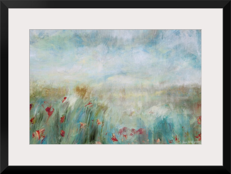 <p>Painting of a field of flowers done in soft brush strokes.</p>