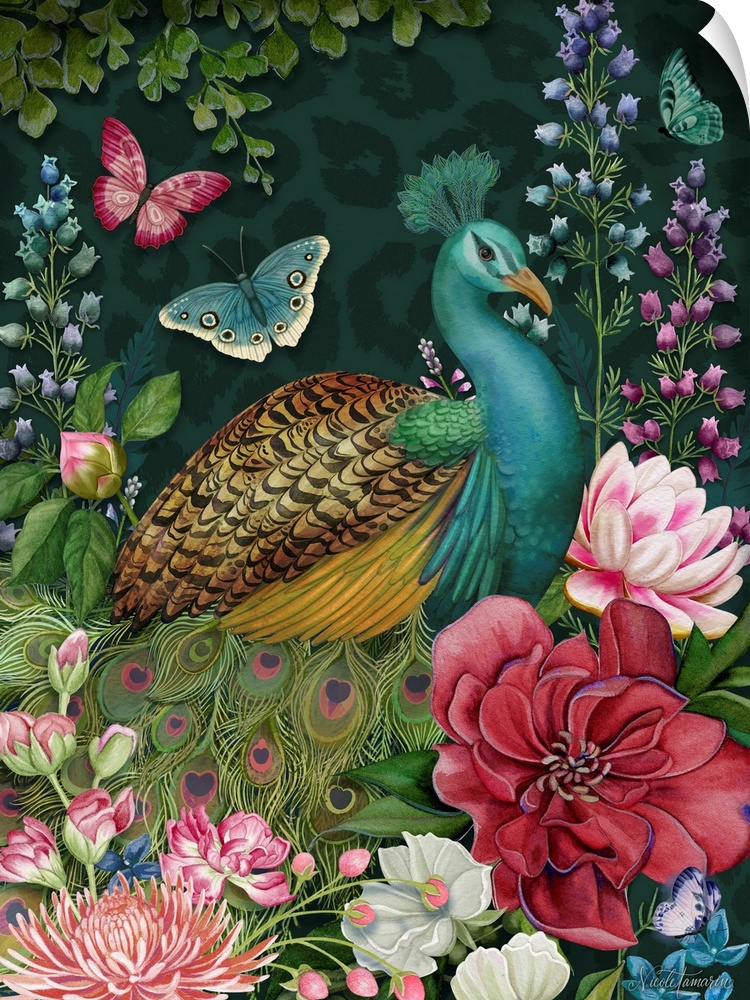 Art Decorative Art Florals Graphic Art Green Wall Art Painting Nicole Tamarin Wildlife Bird Peacock