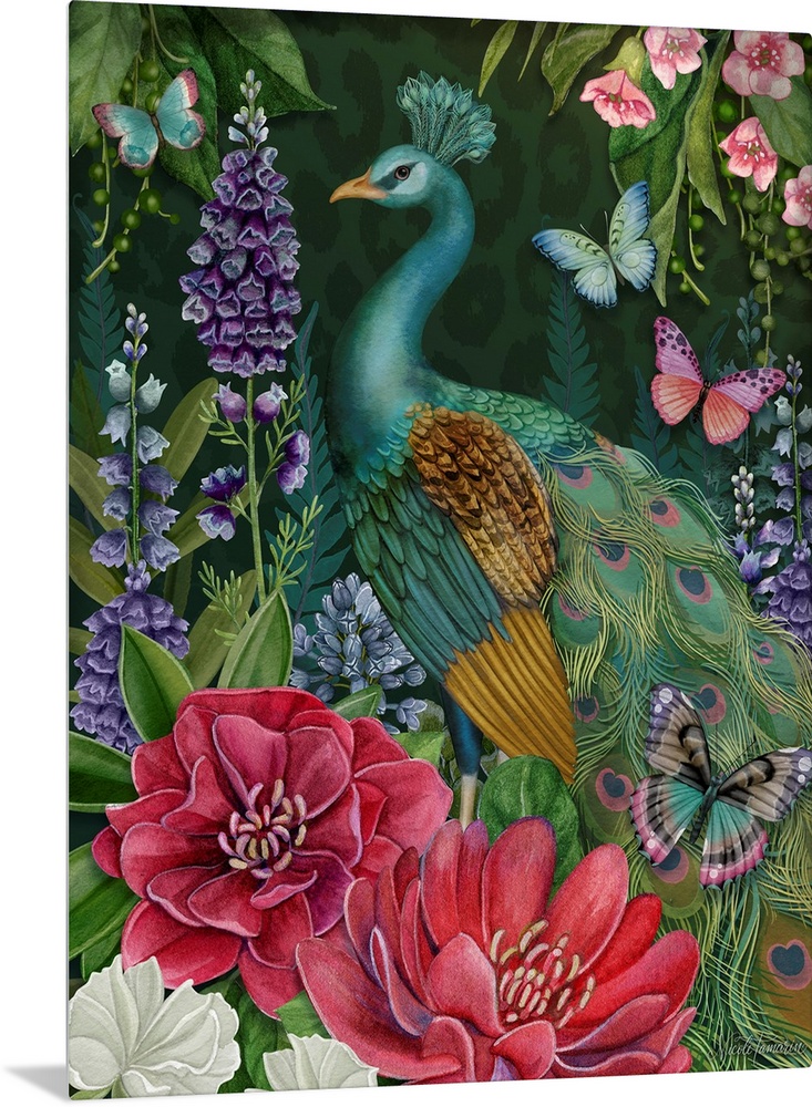 Art Decorative Art Florals Graphic Art Green Wall Art Painting Nicole Tamarin Wildlife Bird Peacock