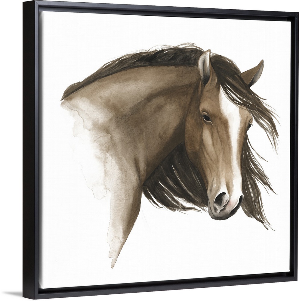 <p>Contemporary watercolor painting of a portrait of a horse with a flowing mane against a white background.</p>