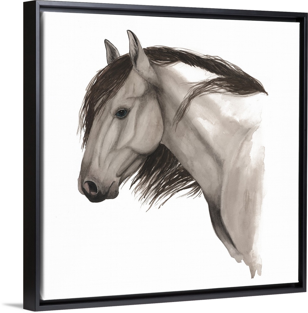 <p>Contemporary watercolor painting of a portrait of a horse with a flowing mane against a white background.</p>