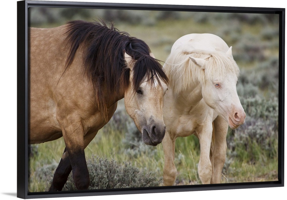 <p>Wild horses (Equus caballos), adults of varying color in herd, Wyoming, USA, June.</p>