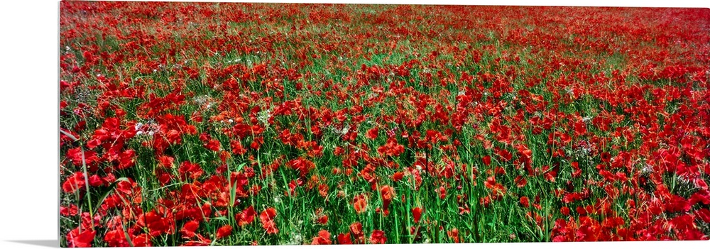 <p>Wild poppies growing in a field, south downs, sussex, england.</p>