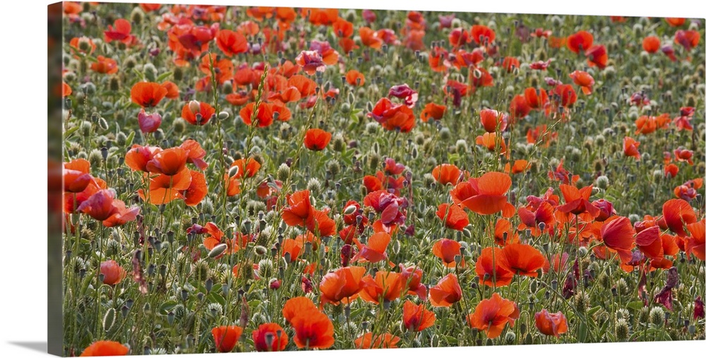 <p>Field of wild poppies (Papaver rhoeas) in the Val d'Orcia, near Pienza, Siena, Toscana, Italy, Europe.</p>