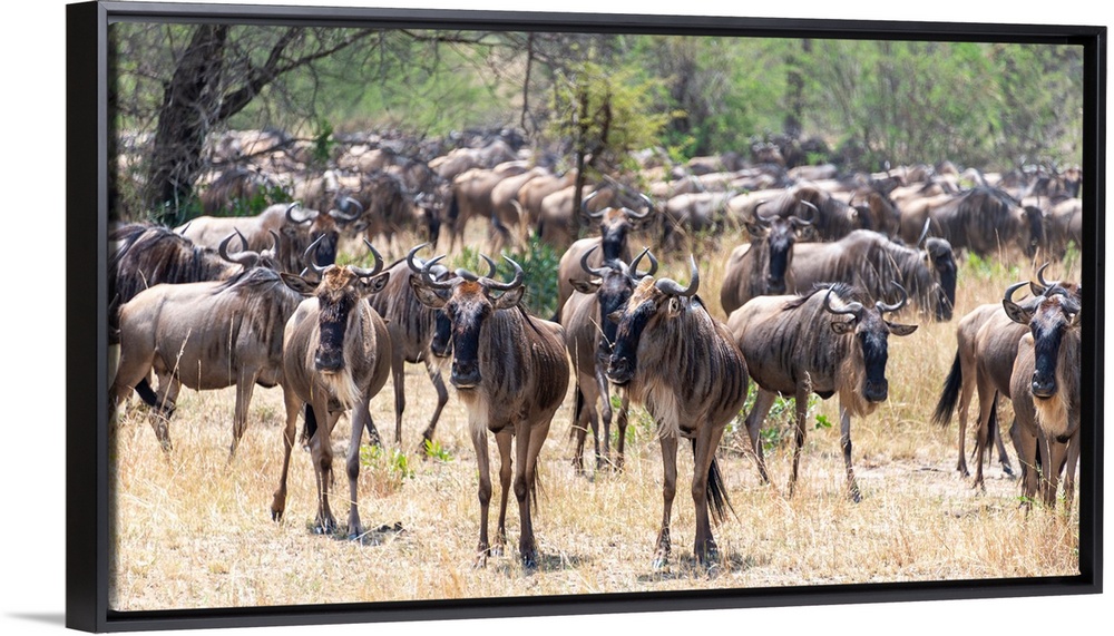 <p>Wildebeests in the Serengeti Tanzania during the great migration.</p>