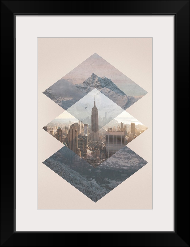 <p>Contemporary collage style artwork of stitched images of New York city and mountain ranges.</p>