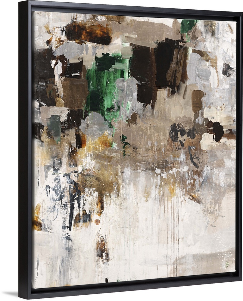 <p>Contemporary abstract painting using dark and light earth tones with pops of green.</p>