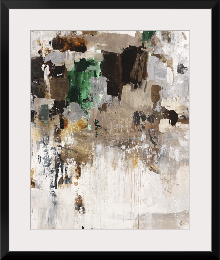 <p>Contemporary abstract painting using dark and light earth tones with pops of green.</p>