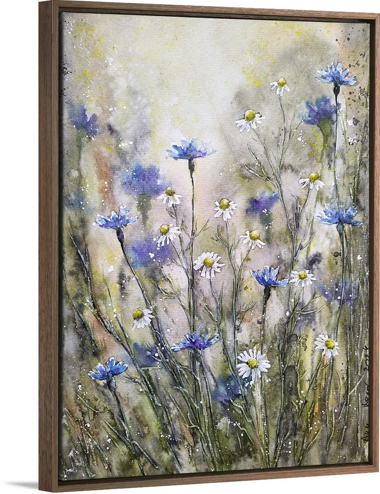 Art Blue Wall Art Contemporary Art Florals Wildflowers Anna Mazur Painting Watercolor