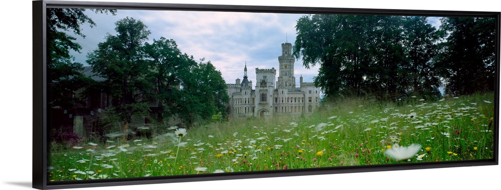 <p>Wildflowers in a field with a castle in the background, hluboka castle, bohemia, czech republic.</p>