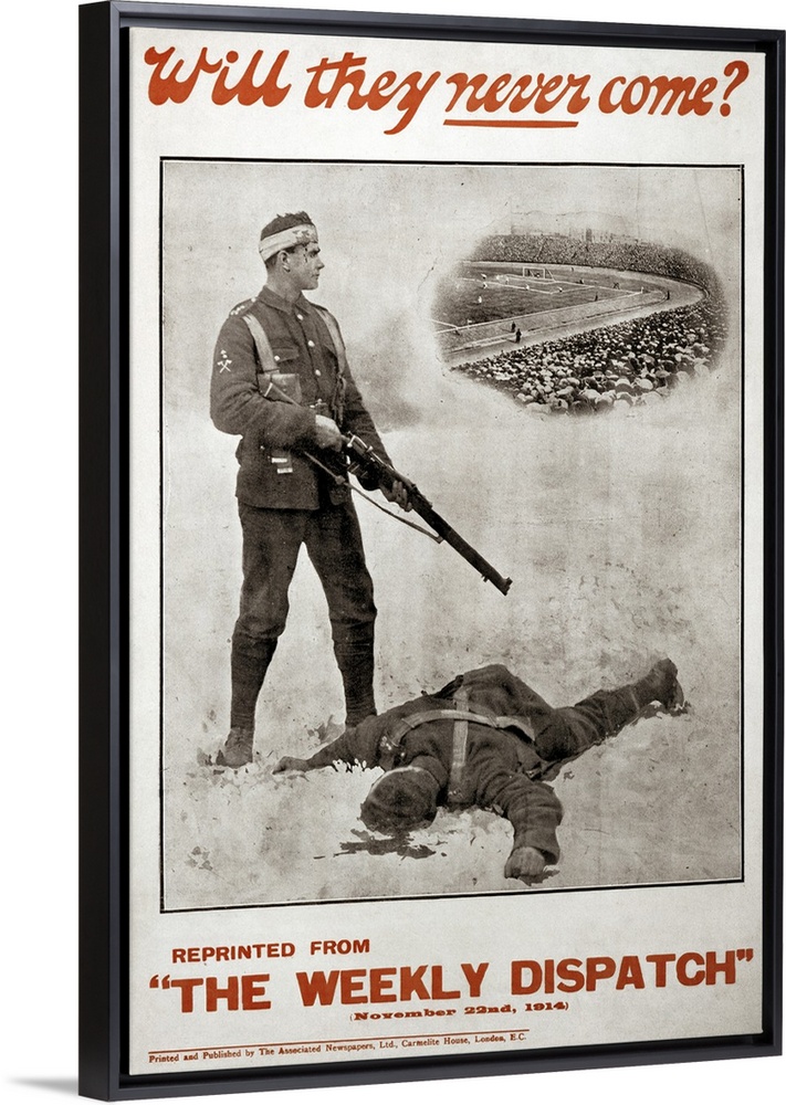 <p>'Will they never come?' British recruitment poster for athletes for the Sportsman Battalion, 1914.</p>