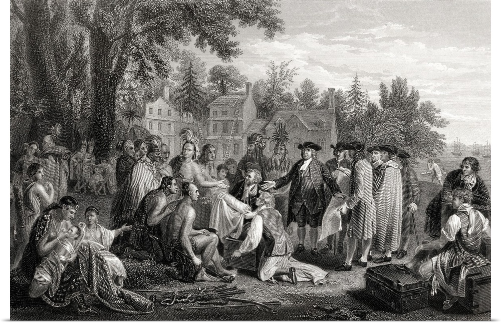 <p>William Penn's Treaty With The Indians, 1682. William Penn, 1644 -1718, English Quaker, Colonizer, In America, Founder Of Pennsylvania, From A 19th Century Print, Engraved By J C Armytage After B West.</p>