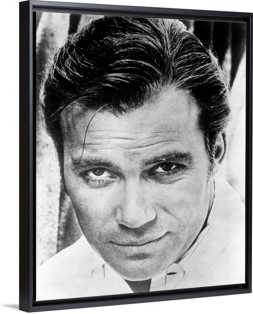 <p>Black and white photograph of William Shatner.</p>