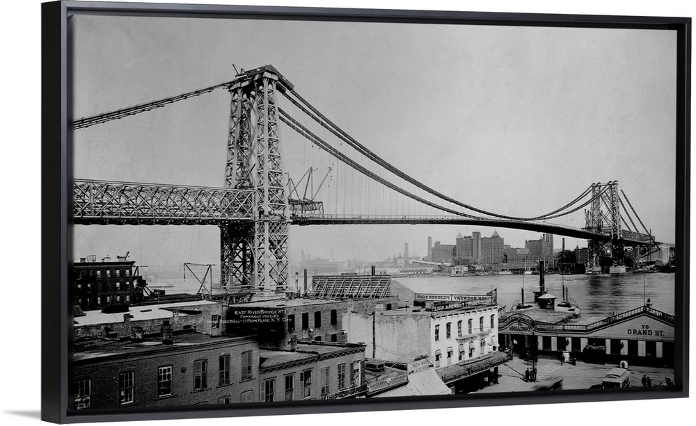 <p>The Williamsburg bridge extends from Delancy Street in the East Village across the East River to Brooklyn. Completed in 1903, the Williamsburg Bridge was not considered the work of beauty that its predecessor, the Brooklyn Bridge, had been. New York City.</p>