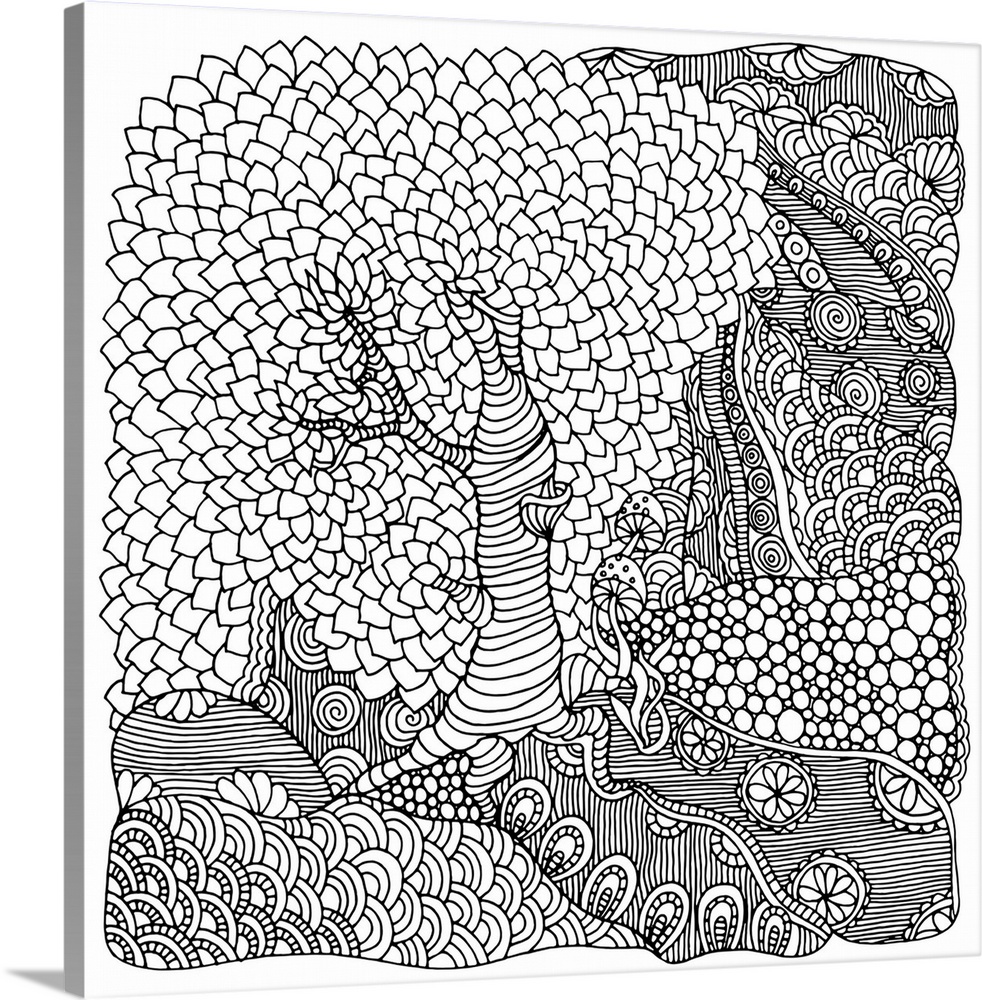 <p>Contemporary line art of a willow tree surrounded by intricate and decorative nature designs. Perfect for Coloring Canvas.</p>