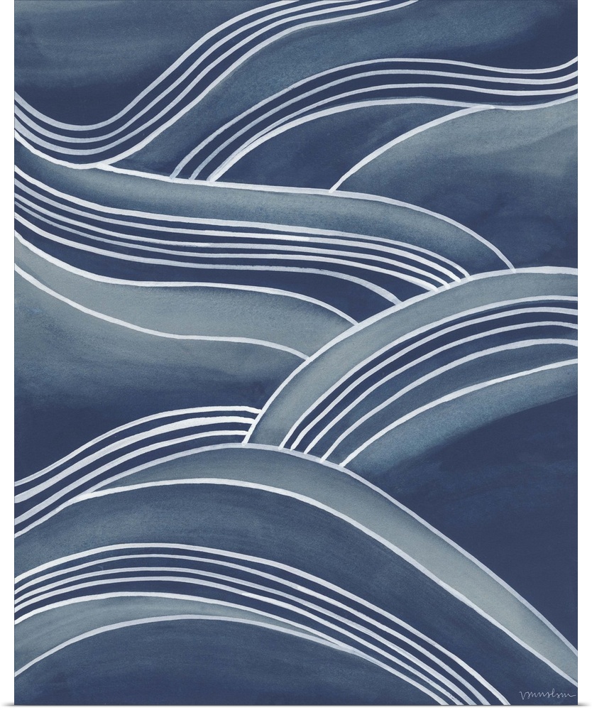 <p>Wavy white lines over shades of blue create the illusion of rolling waves.</p>