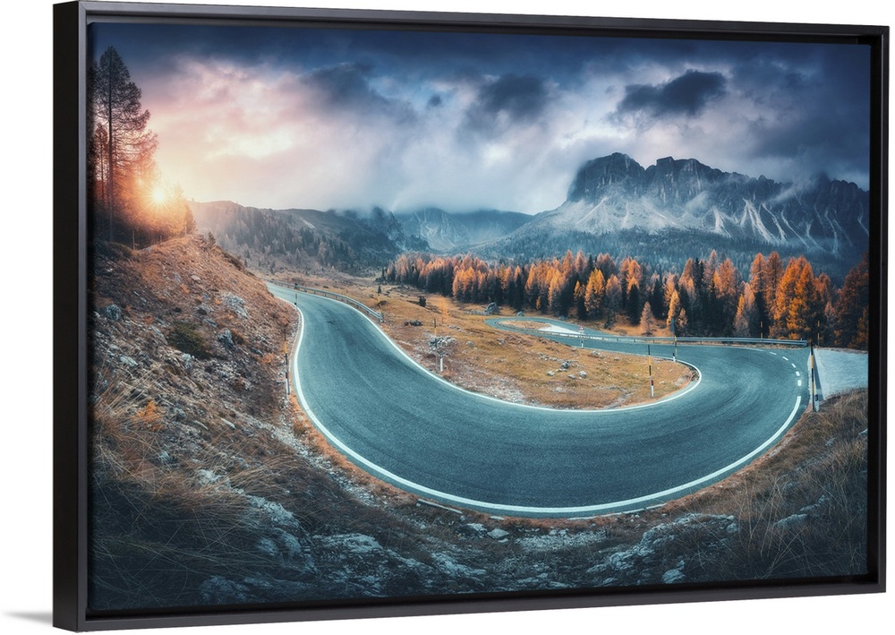 <p>Winding Road In The Mountains At Sunset In Autumn</p>