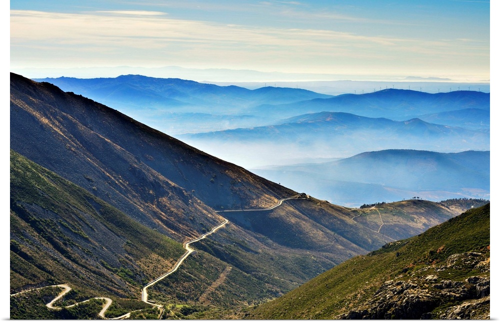 <p>Winding road to the Acor mountain range. Serra da Estrela Nature Park, Portugal.</p>
