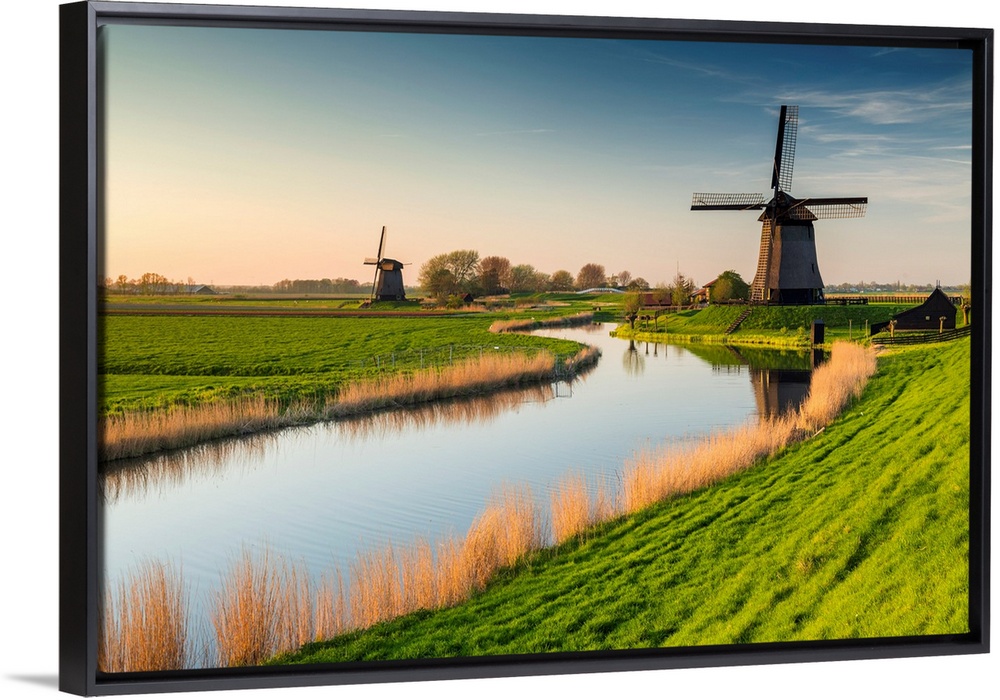 <p>Windmill Along Canal, near Schermerhorn, North Holland, Netherlands.</p>