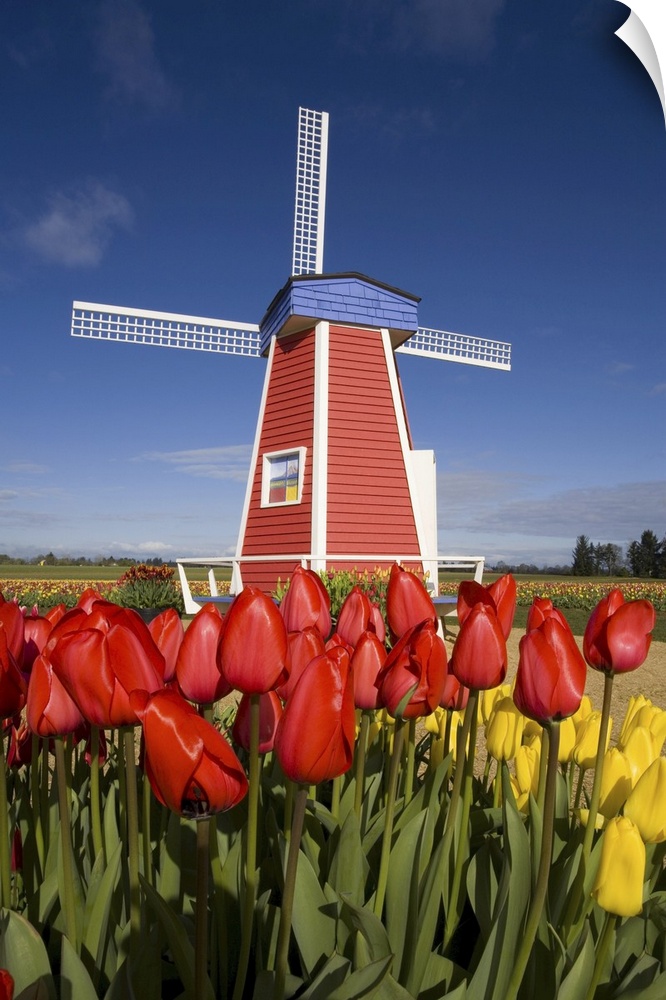 <p>02 Apr 2007, Oregon, USA --- Windmill in Tulip Field --- Image by Craig Tuttle/Corbis</p>