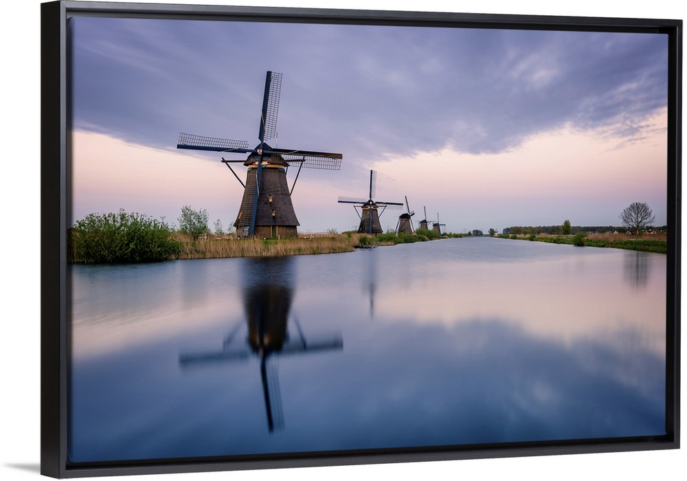<p>Windmills and reflections, Kinderdijk, UNESCO World Heritage Site, The Netherlands, Europe</p>