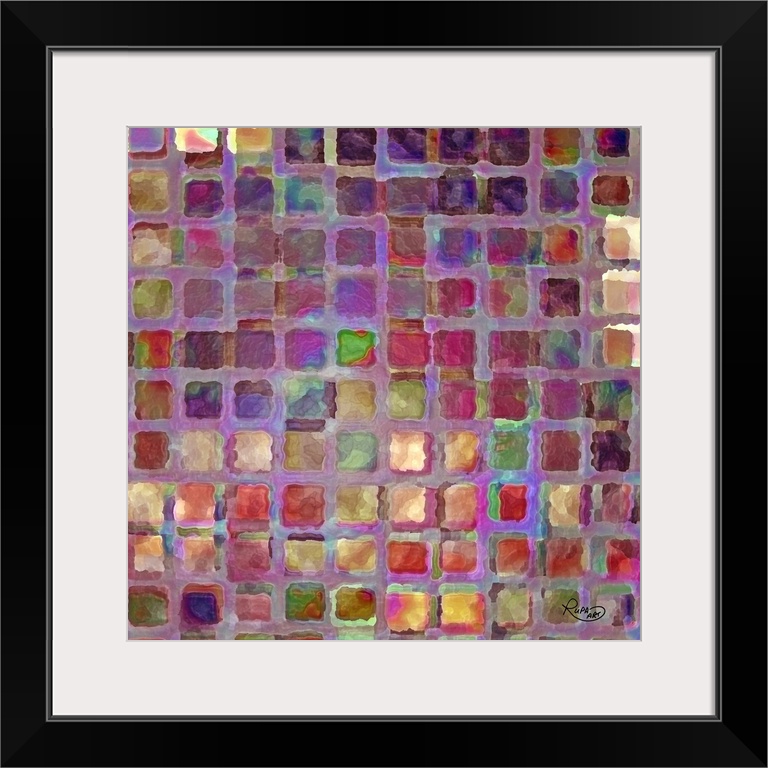 <p>Square abstract art that has a warm toned square pattern creating a tiled look.</p>