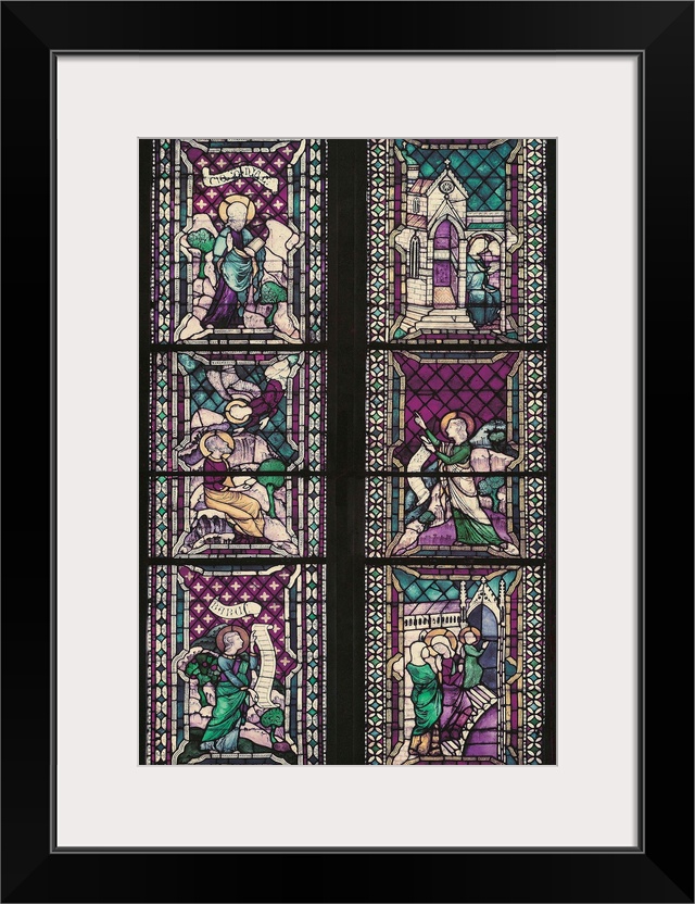 <p>Windows with stories of the life of the Virgin and of the Prophets, by Lorenzo Maitani, 1300 - 1325 about, 14th Century, - Italy, Umbria, Terni, Orvieto, Santa Maria Cathedral. Detail. Stained glass window stories of the Virgin and prophets dream of Jacob</p>