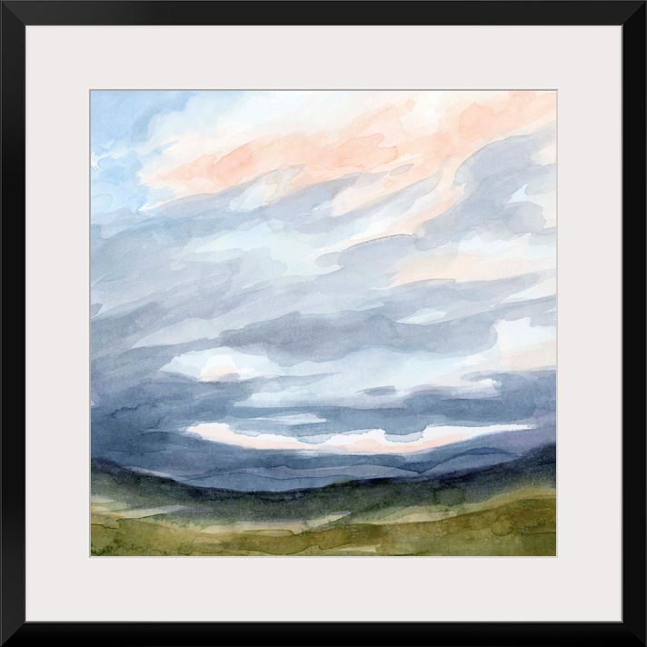 Art Blue Wall Art Color Palettes Peach and Indigo Twilight Blues Decorative Art Landscapes Skyscapes Clouds Painting Grace Popp Watercolor