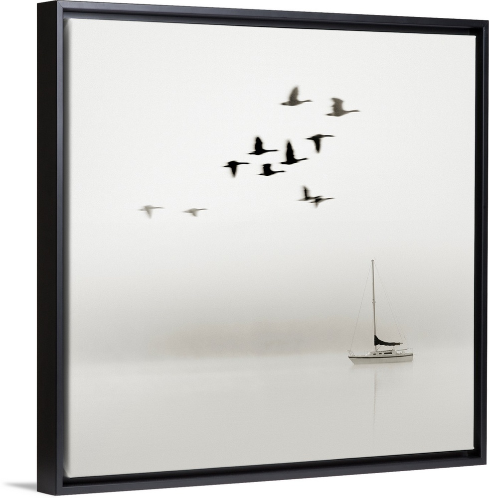 Nicholas Bell White Four Seasons Winter Lake Mist and Fog Seascapes Minimalist Art Photography Transportation Boat Sailboat Wildlife Bird