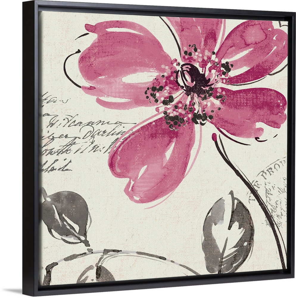 <p>This square shaped decorative accent for the home of office shows an ink drawing of a large five petal flower with hand written text in the background.</p>
