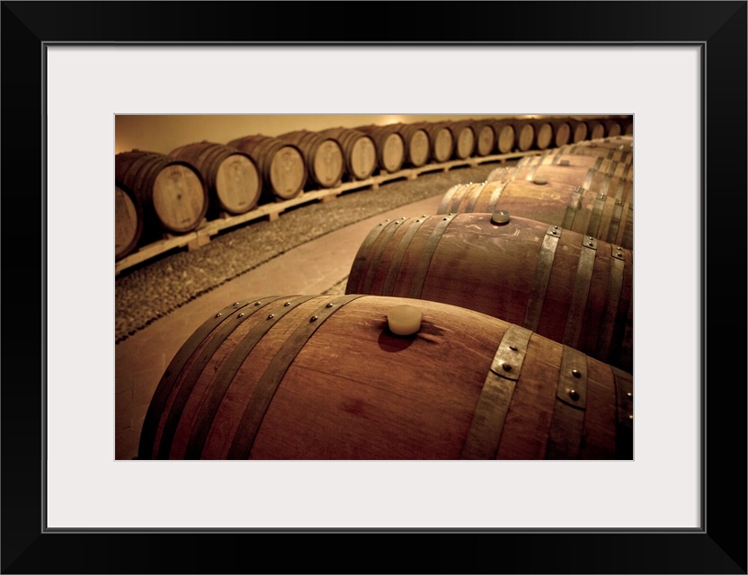 <p>Wine barrels in a cellar in Italy.</p>