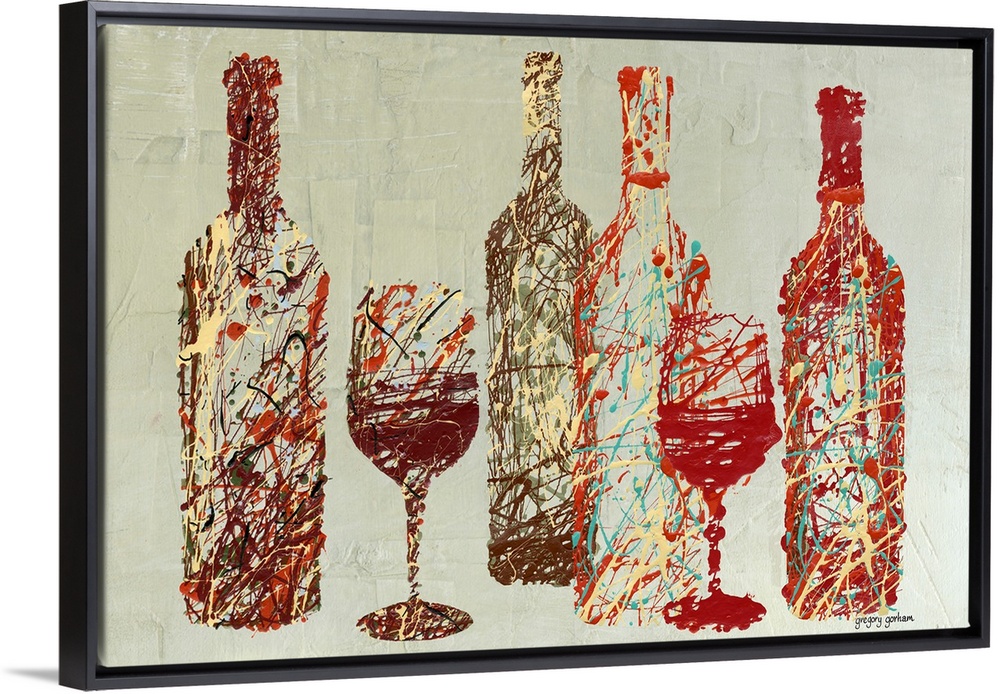 <p>Contemporary, abstract interpretation of wine bottles and glasses.</p>