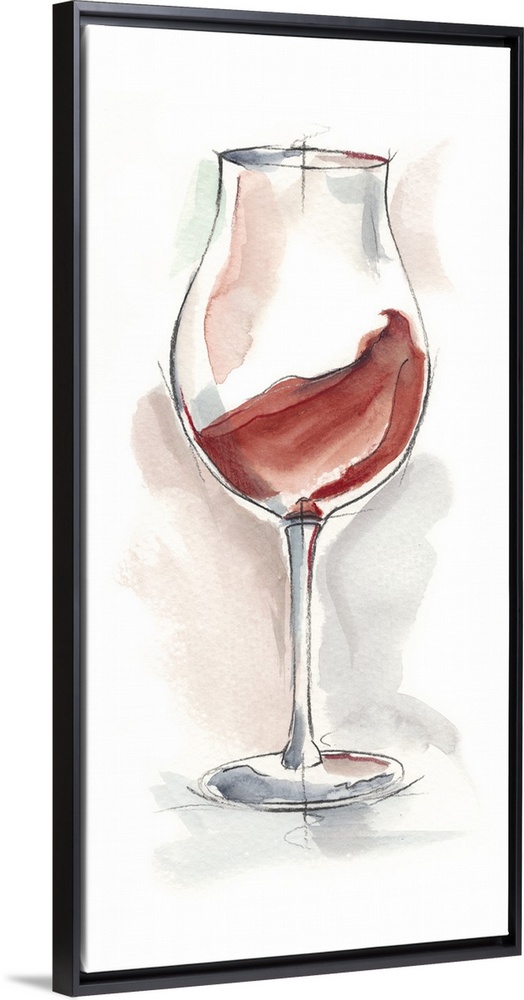 <p>Vertical artwork featuring sketched wine glasses with watercolor accents.</p>