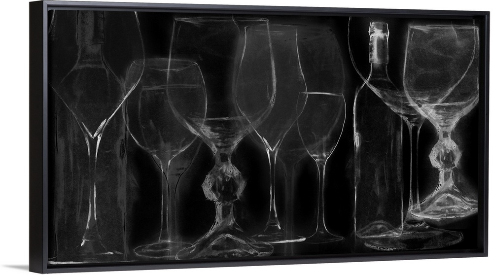 <p>Contemporary artwork of a chalkboard sketch-like rendering of wine glasses.</p>