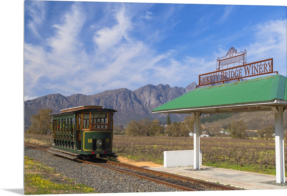 <p>Wine tram at Rickety Bridge Wine Estate, Franschhoek, Western Cape, South Africa</p>