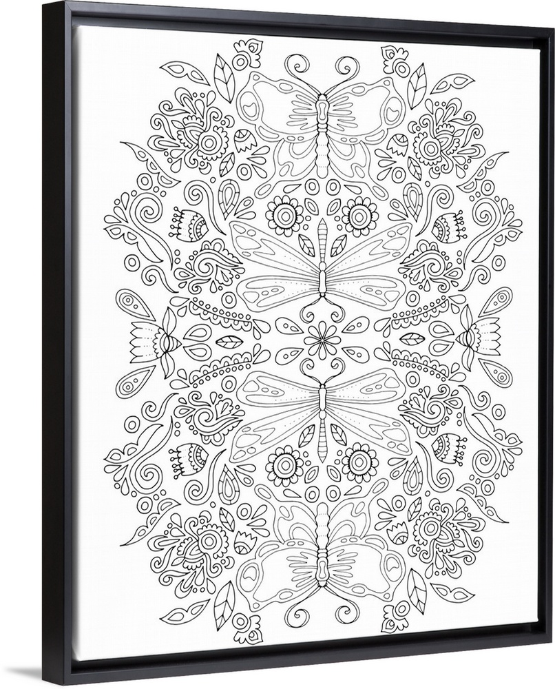 <p>Black and white symmetrical line design with a butterfly and floral pattern.</p>