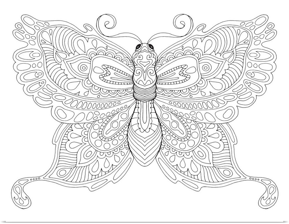 <p>Black and white line art of an intricately designed butterfly.</p>
