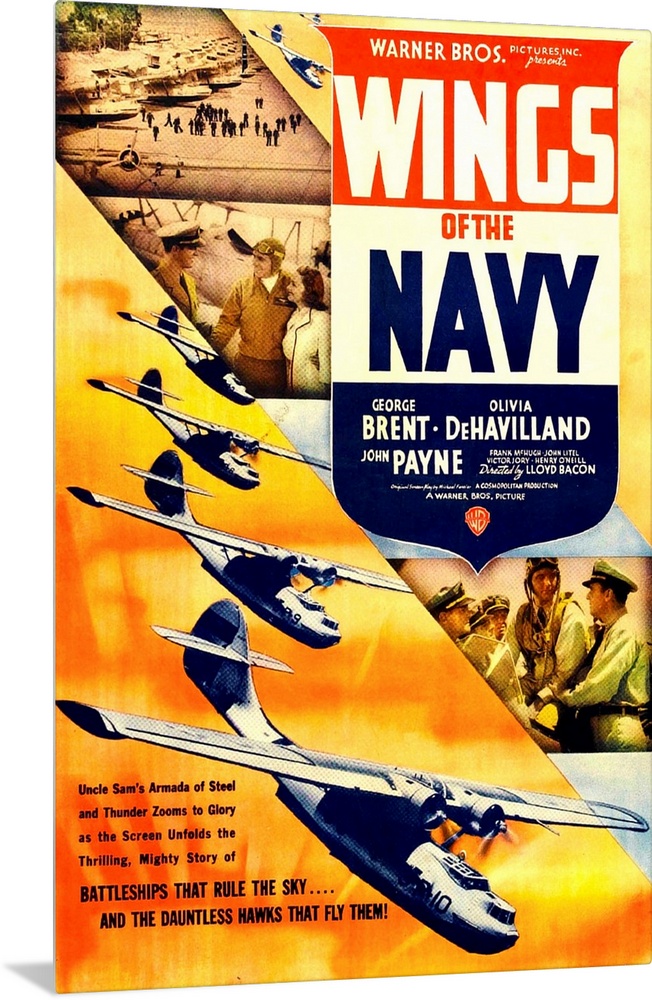 <p>WINGS OF THE NAVY, US poster, top from left: John Payne, George Brent, Olivia DeHavilland, 1939</p>