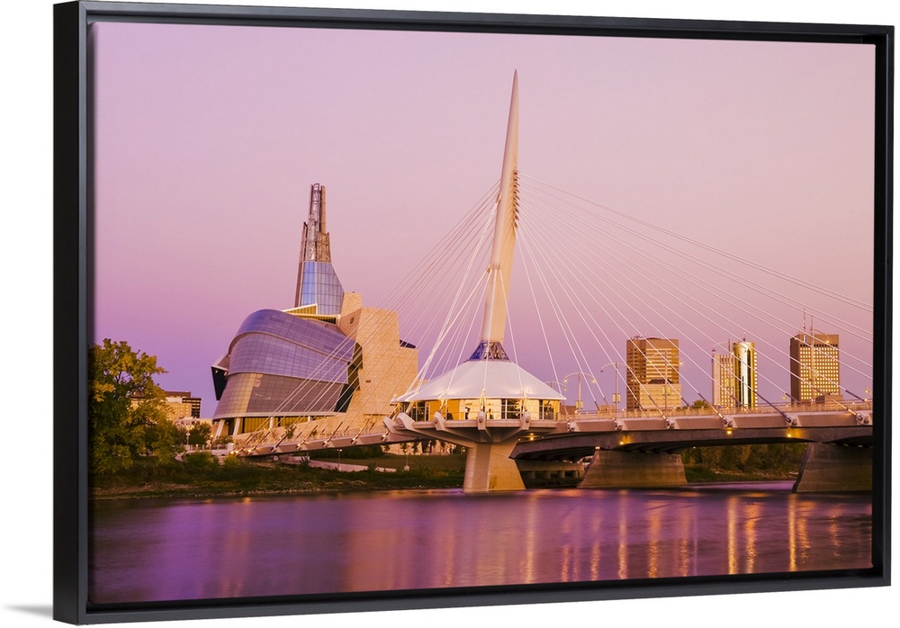 <p>Winnipeg skyline from St. Boniface showing the Red River, Esplanade Riel Bridge and Canadian Museum for Human Rights; Winnipeg, Manitoba, Canada</p>