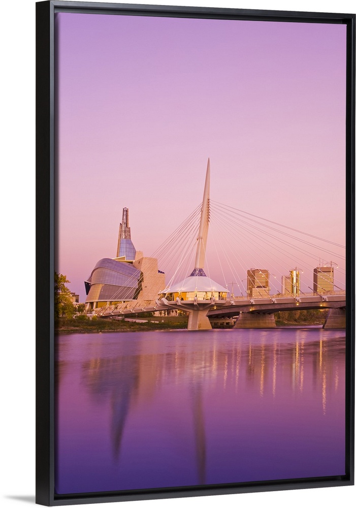 <p>Winnipeg skyline from St. Boniface showing the Red River, Esplanade Riel Bridge and Canadian Museum for Human Rights; Winnipeg, Manitoba, Canada</p>