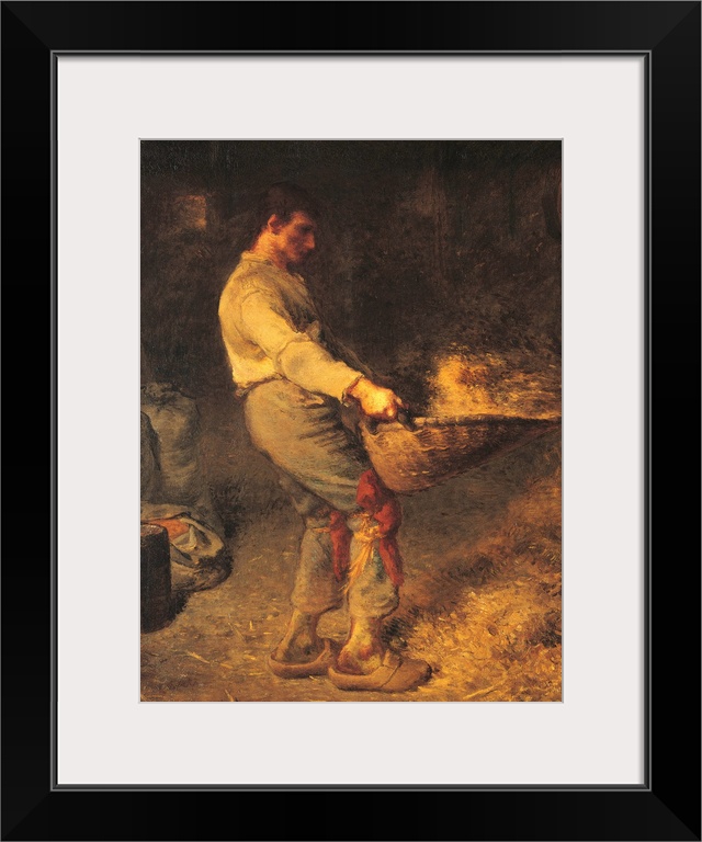 <p>A Winnower, by Jean-Franois Millet, 1866 - 1868, 19th Century, oil on canvas, cm 79 x 58 - France, Ile de France, Paris, Muse dOrsay, RF1874. All. Young peasant willowing wheat shoes trousers barn straw sacks. (273045) Everett Collection\Mondadori Portfol</p>
