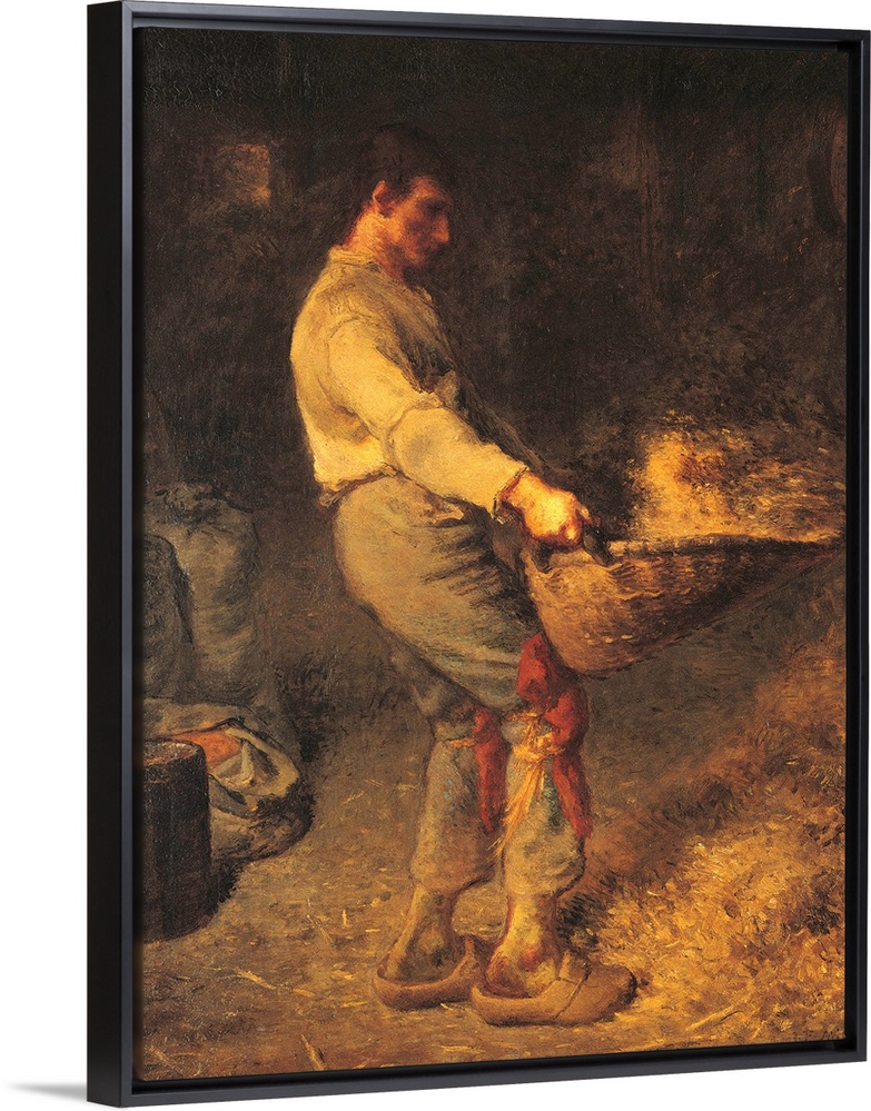 <p>A Winnower, by Jean-Franois Millet, 1866 - 1868, 19th Century, oil on canvas, cm 79 x 58 - France, Ile de France, Paris, Muse dOrsay, RF1874. All. Young peasant willowing wheat shoes trousers barn straw sacks. (273045) Everett Collection\Mondadori Portfol</p>
