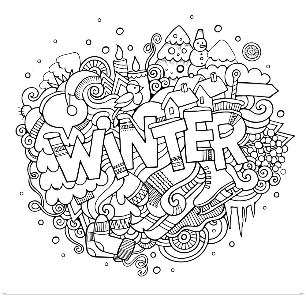 <p>A series of winter-themed items, such as ice skates, snowflakes, and snowmen.</p>