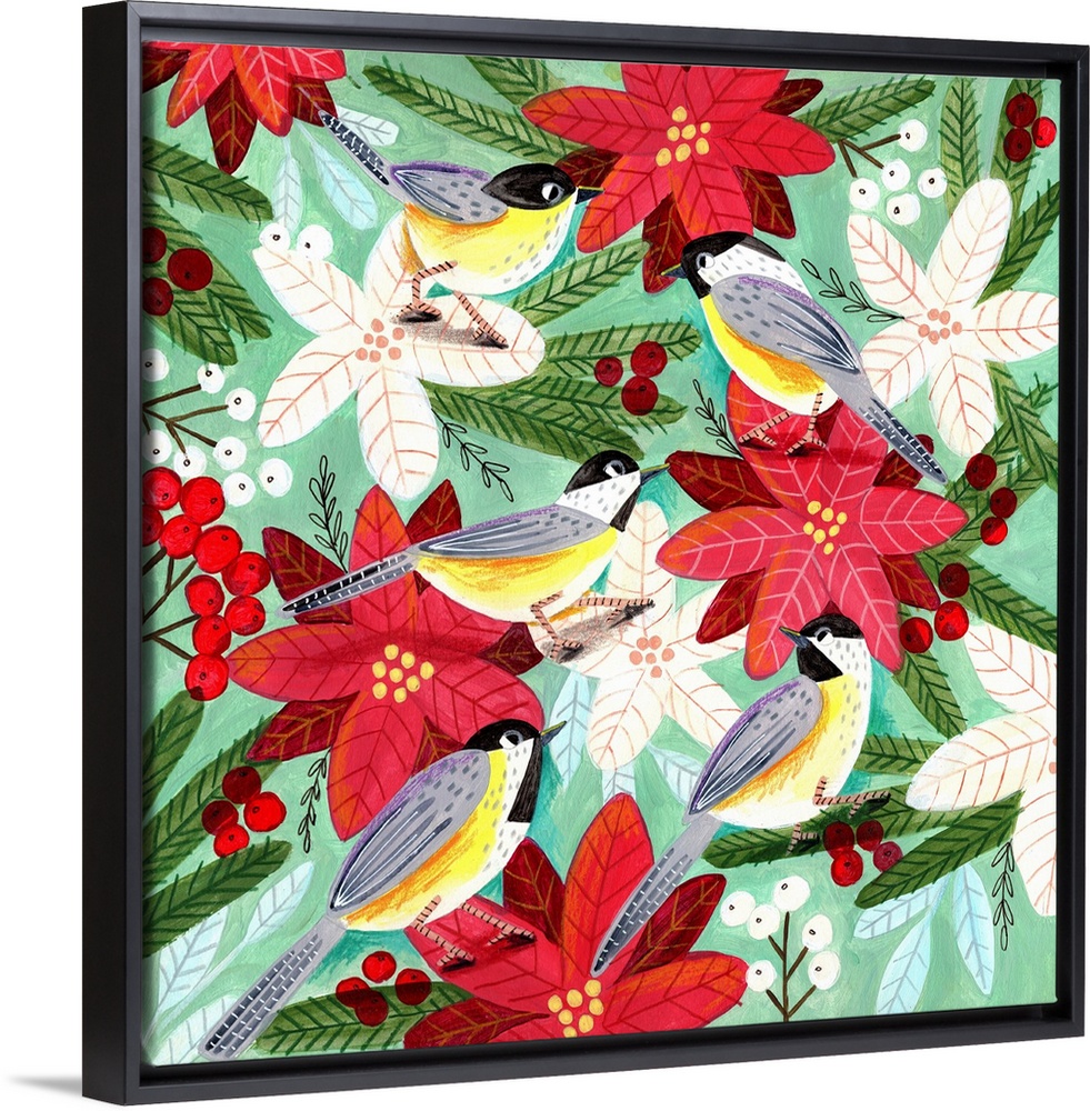 Art Caroline Bonne Muller Contemporary Art Florals Poinsettia Green Wall Art Holidays Christmas Painting Wildlife Bird