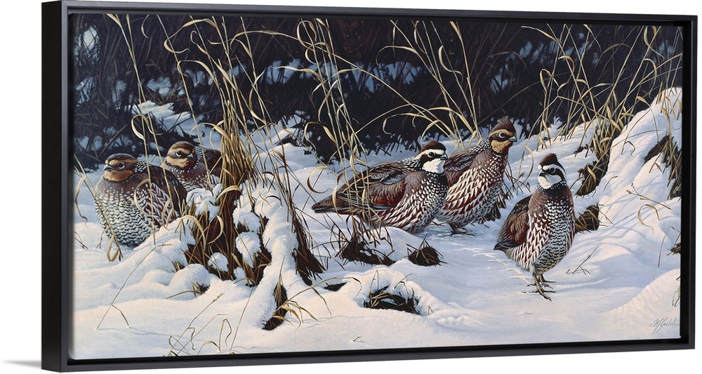 <p>A group of quail in the snow.</p>