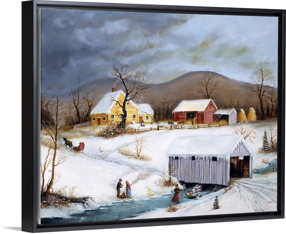 Americana Covered Bridge Art Winter Joseph Holodook Landscapes Barn