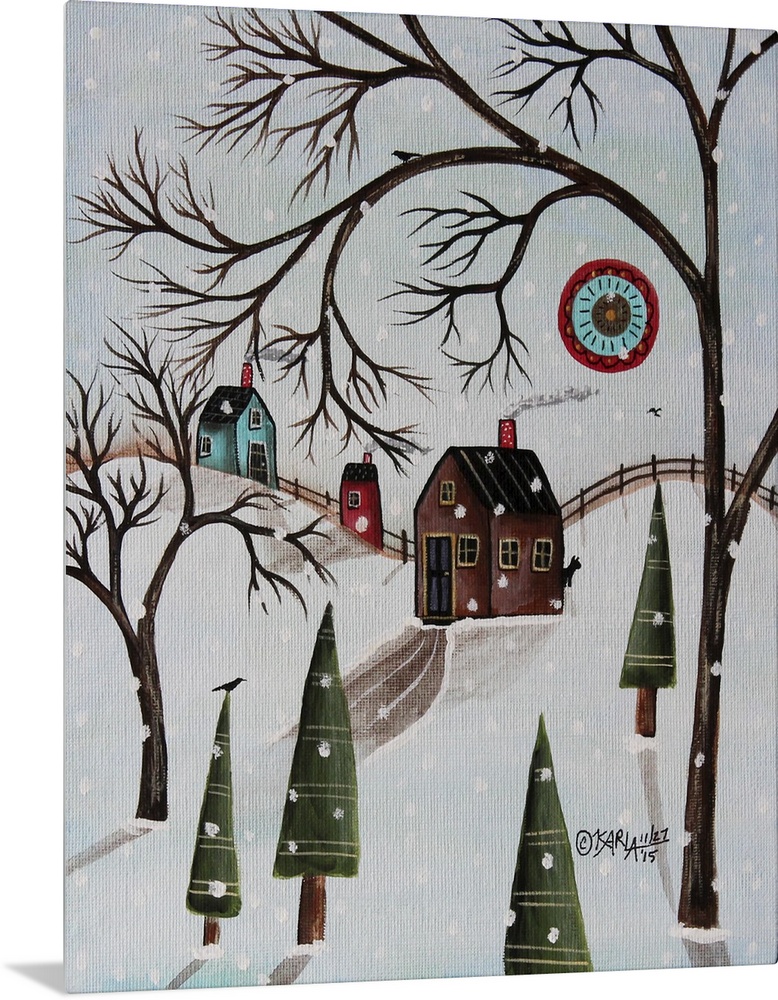 Art Decorative Art Folk Art Four Seasons Winter Karla Gerard Landscapes Snowscapes Trees Painting